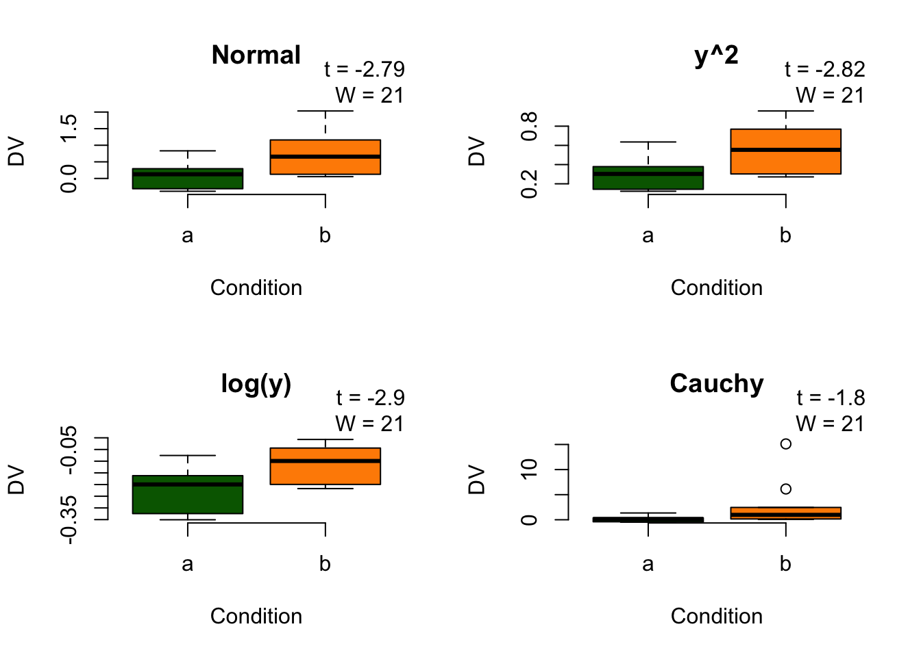 - Visualize (Q-Q plot, boxplots, descriptives)