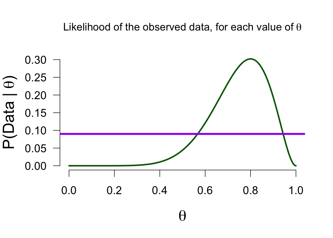 How likely is 8 out of 10 for all possible \(\theta\) values?