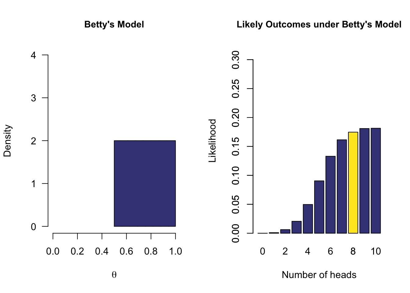 How likely is 8 out of 10 for all \(\theta\) values in the model, on average?